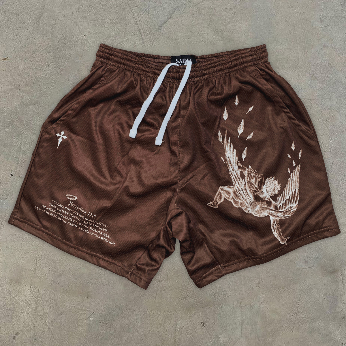 Saint Jesus Cross Print Mesh Shorts