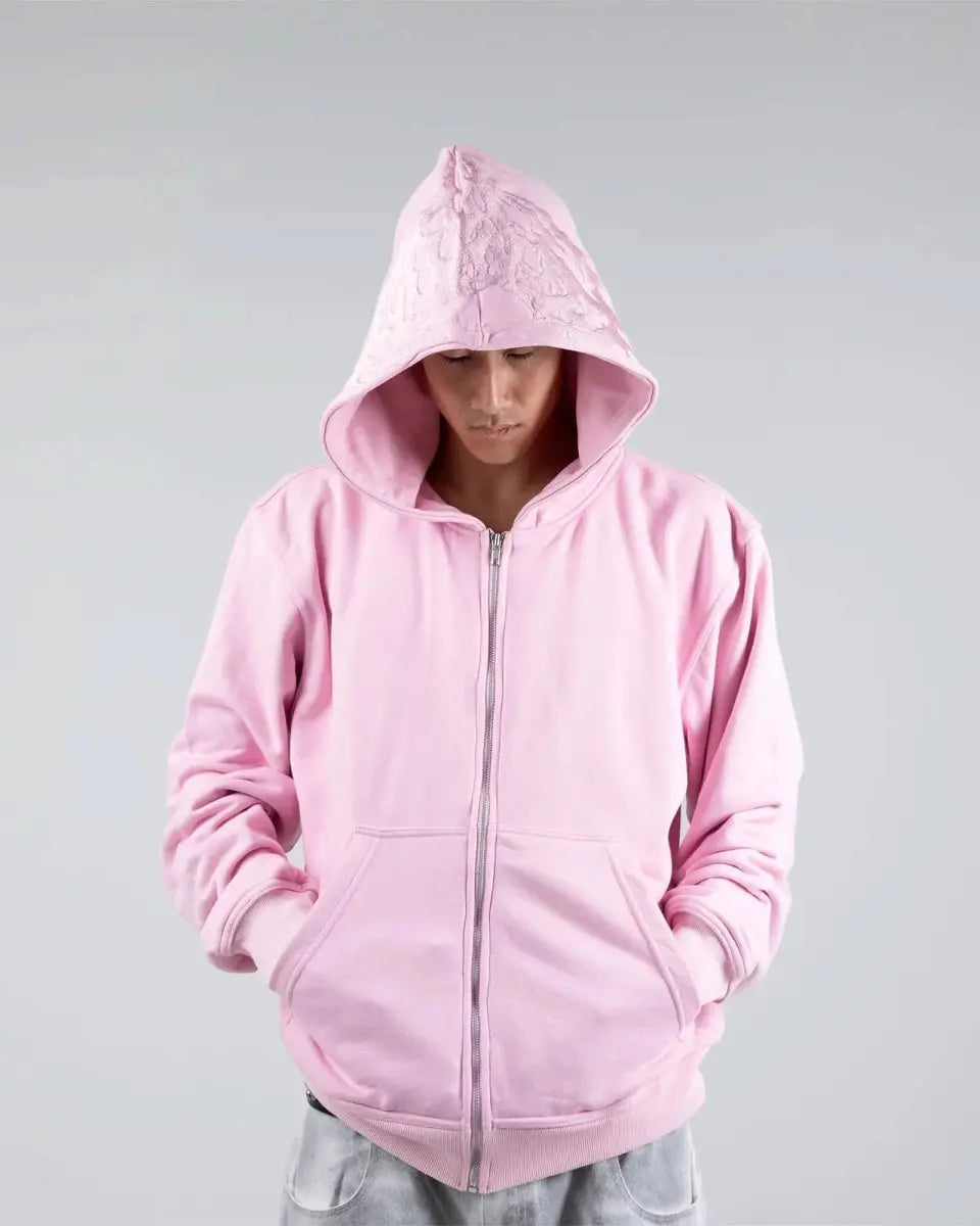 Male model is 6'1 140lbs, wearing size L Zip-Up
