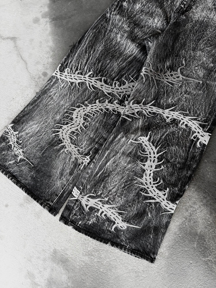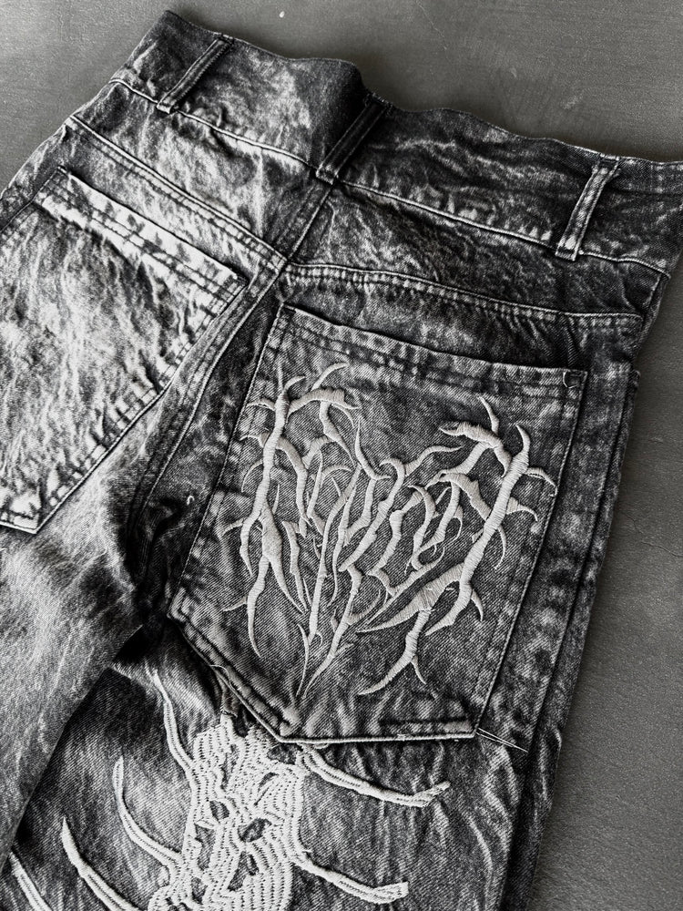 Embroidery: Front and back embroidery covering the entire leg + back pocket