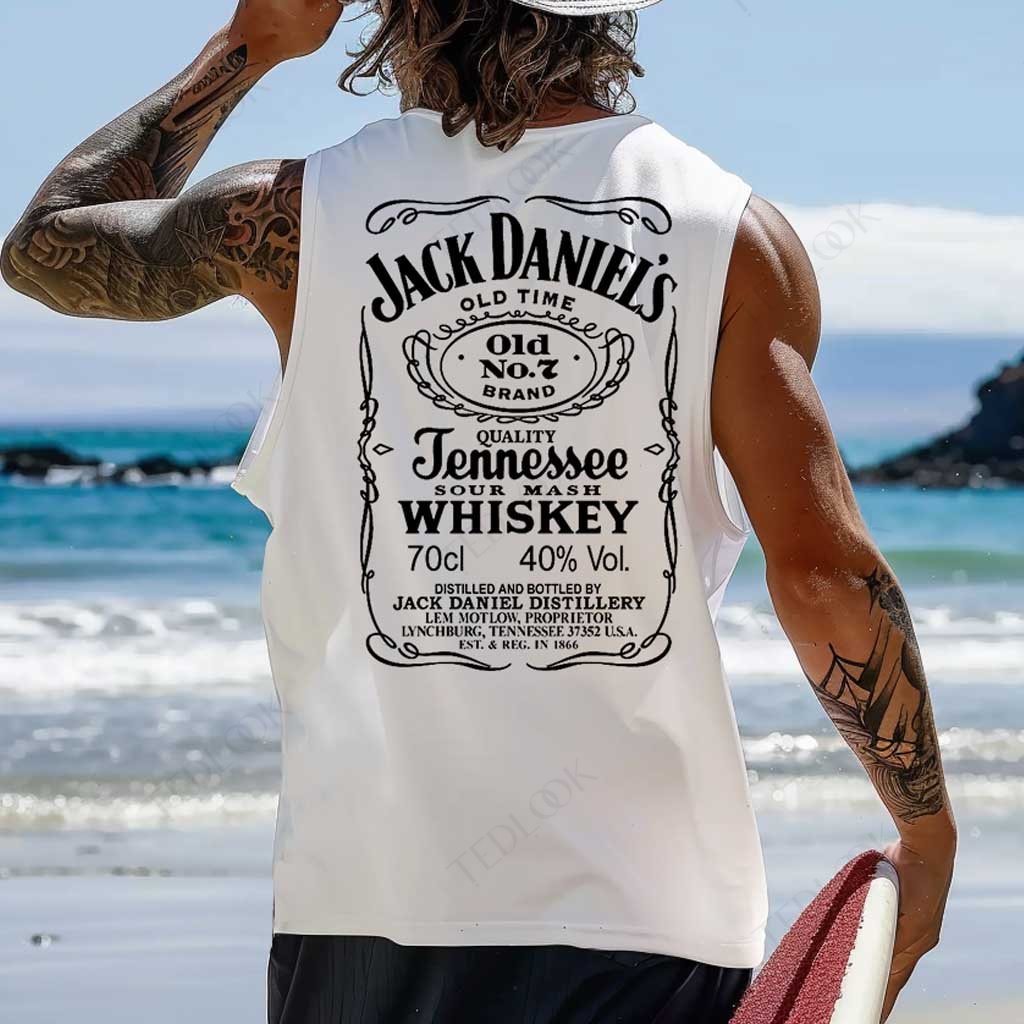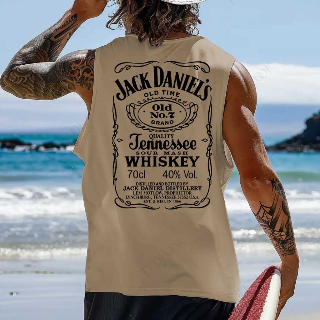 • Design Elements: Vintage-inspired label print, Sleeveless design, Relaxed fit