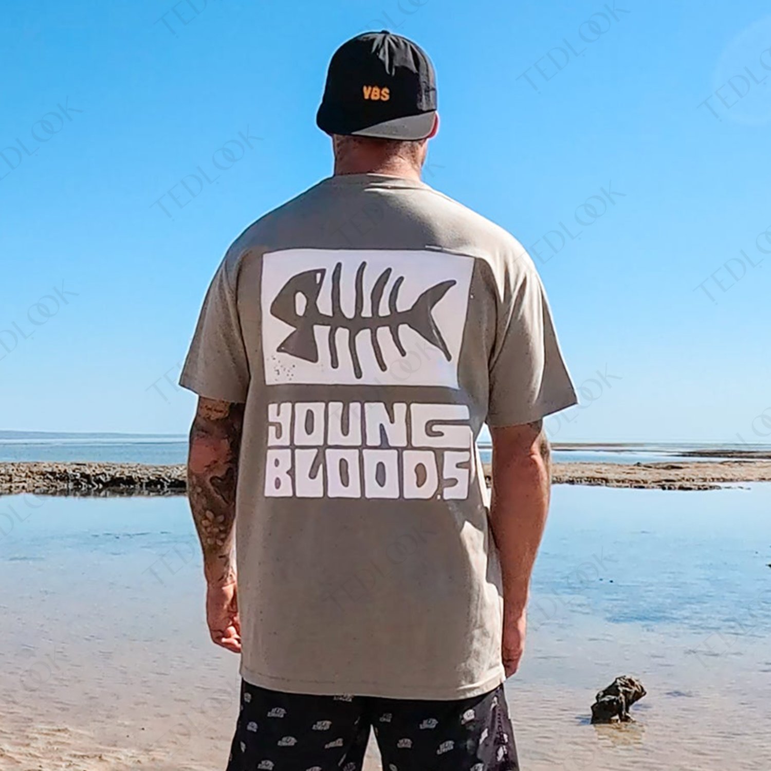 Mens Retro Vacation Fish Graphic Print T-shirt