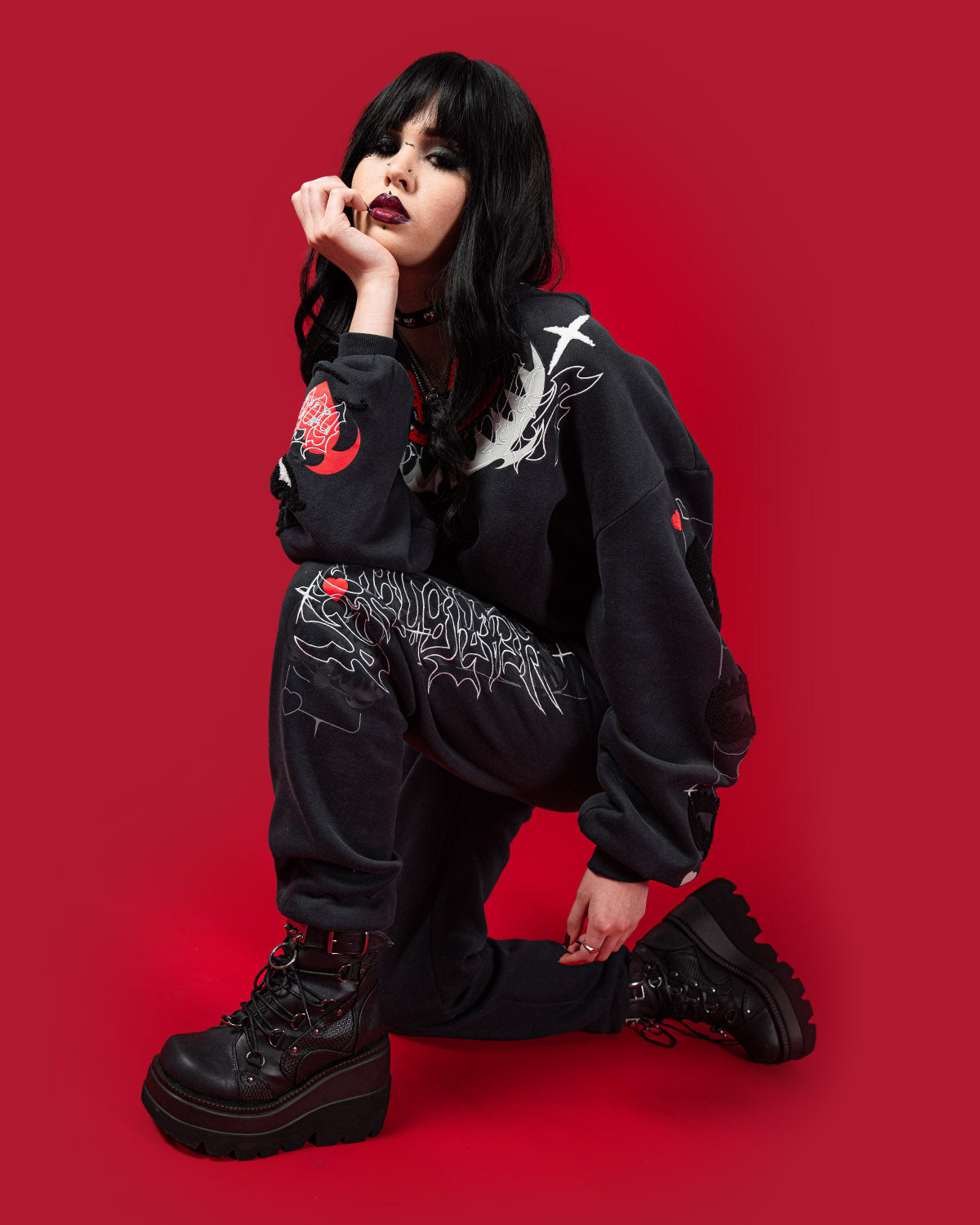 - all over screen print, embroidered and soft tufted graphics